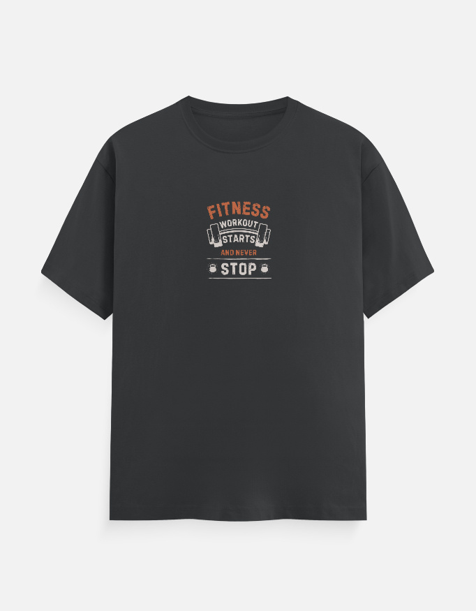 Celebrate your fitness mindset with the Round Neck Men’s “Fitness Workout Starts and Never Stop” T-Shirt. Enjoy comfort, motivation, and everyday style—order yours today and never stop moving forward!