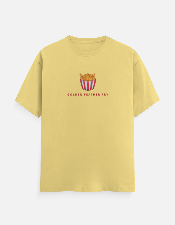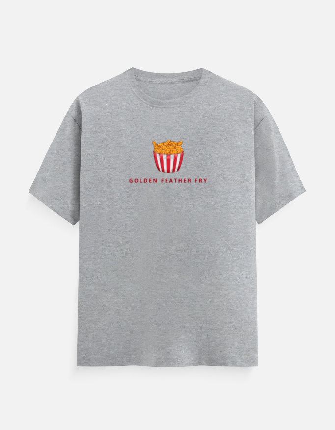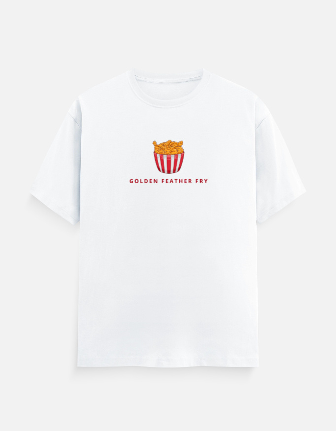 Upgrade your casual wardrobe with the Round Neck Men’s “Golden Feather Fry” T-Shirt. Enjoy comfort, quality, and standout style—order yours today!