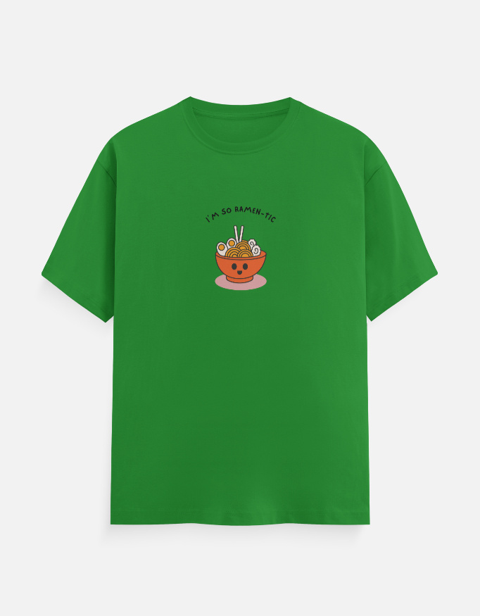 Playful Design: The “I’m so Ramen-tic” design adds a fun and quirky look, perfect for food lovers and casual outfits.