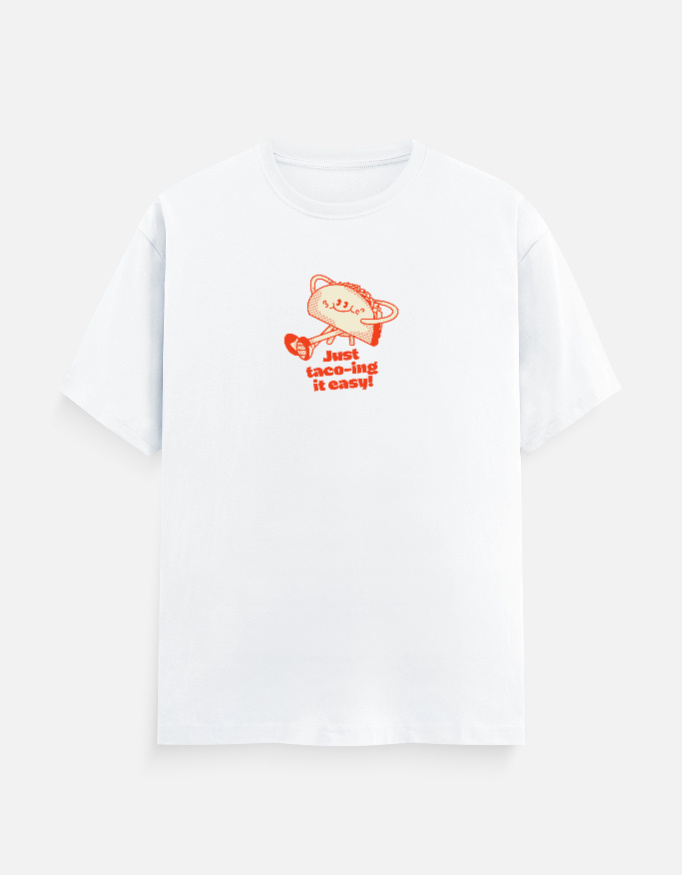 Fun Design: The playful “Just taco-ing it easy!” message brings a relaxed vibe and lighthearted personality to your look.