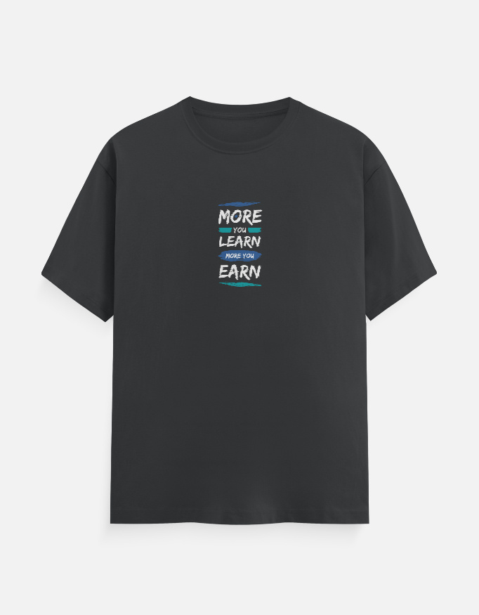 Round Neck Men’s ‘More You Learn, More You Earn’ T-Shirt – Stay Curious and Confident!