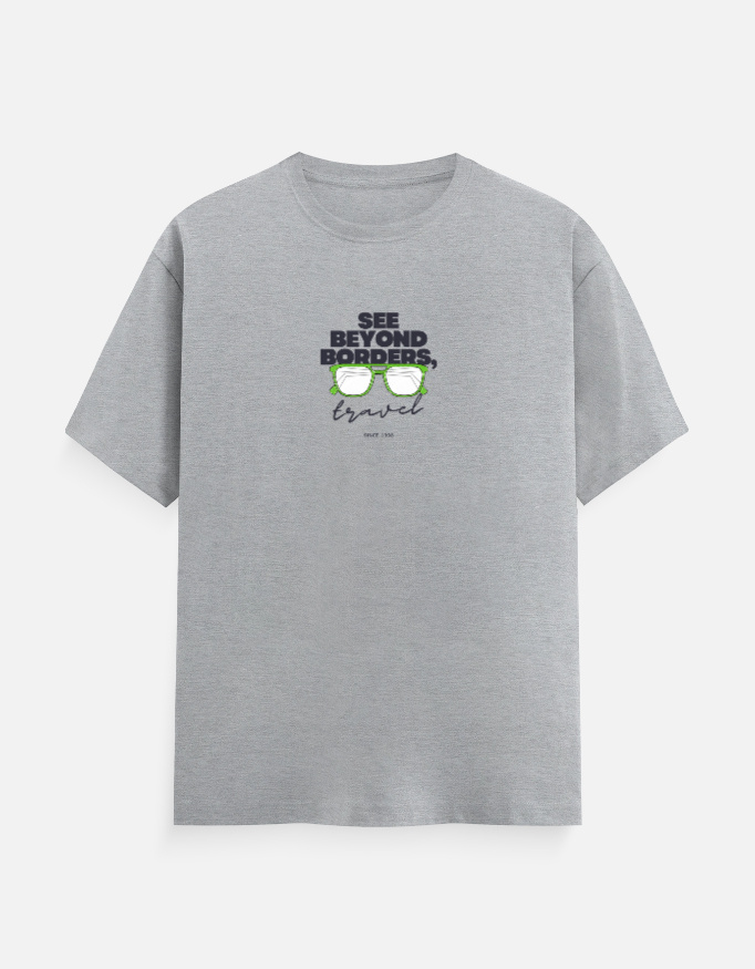Round Neck Men’s “See Beyond Borders, Travel” T-Shirt – Explore Freely & Stay Comfortable!