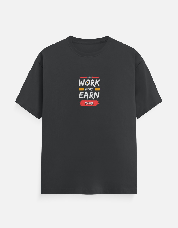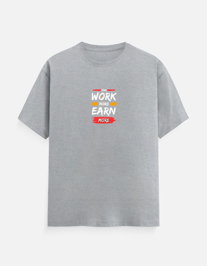 Round Neck Men’s ‘Work More, Earn More’ T-Shirt – Stay Driven and Comfortable!